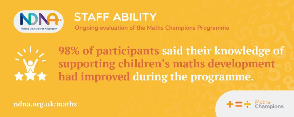 - 98% said their understanding of supporting children’s maths development improved