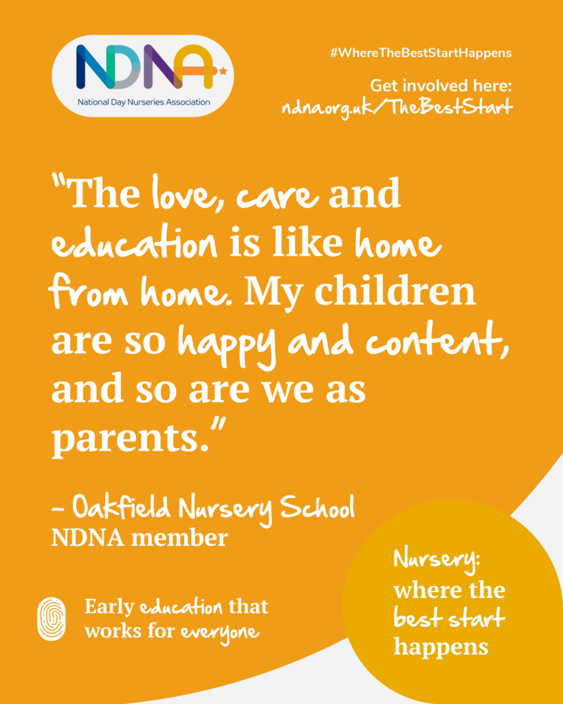 NDNA’s campaign calls for fair and sustainable funding and investment in the early years workforce, as well as recognition of PVI nurseries and their essential role in delivering the Best Start in Life.