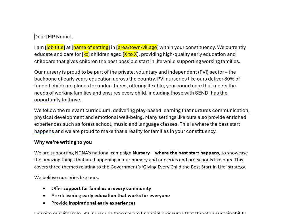 National Day Nurseries Association (NDNA) is proud to champion the vital role that private, voluntary and independent (PVI) nurseries play in giving children aged 0–5 years the best possible start in life. As the backbone of early years education in the UK, PVI nurseries are already delivering high-quality care, education and support to families across every community – and we are so proud of you.